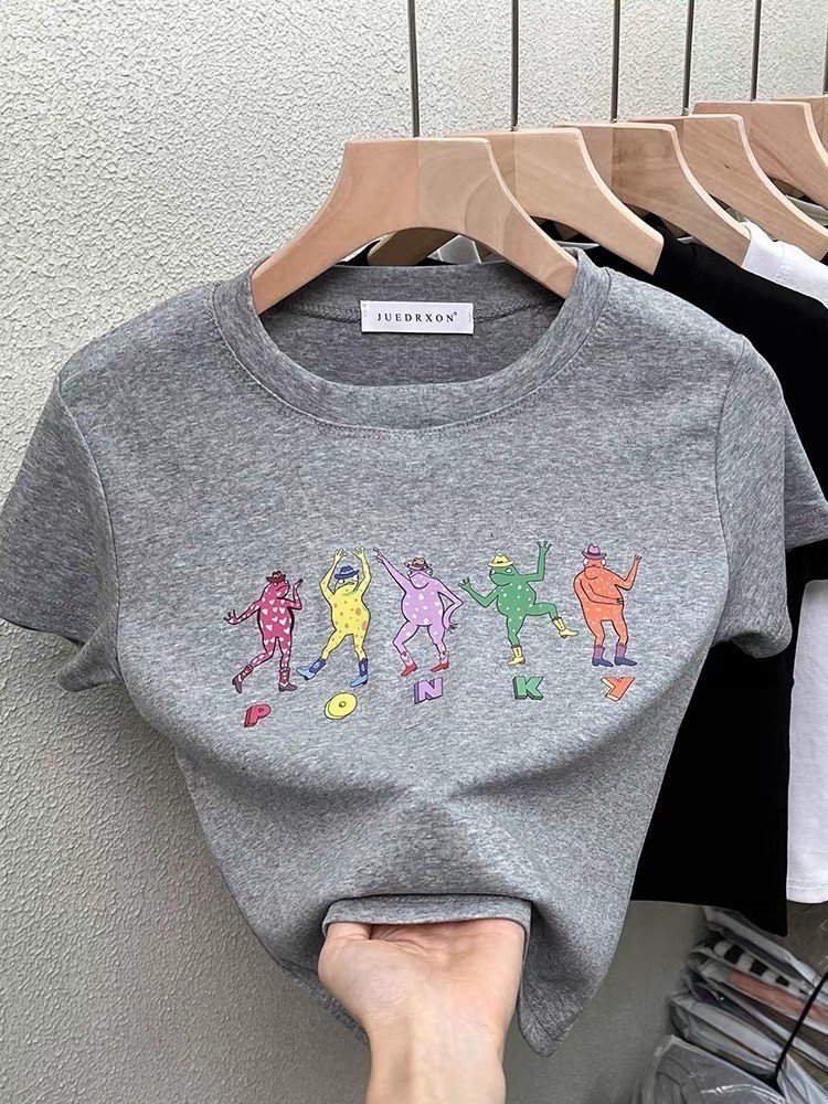 Estampado: Tiene un diseño gráfico en azul con letras estilizadas y un detalle en verde neón que dice «JEANS FASHION».