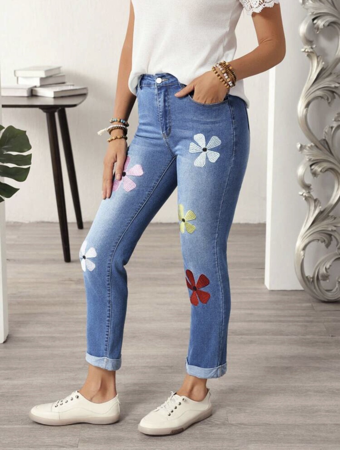 Jeans Dama Flores